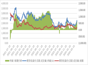 春节假期以来,企业出货放缓,库存呈现增加趋势,部分企业累库明显,对近月合约影响更大。在年报中我们提到,2024年新增产能投放的压力依然严峻,加之夏季的检修预期和今年玻璃出清带来的需求负反馈,中长线我们可以关注9-1正套策略。
