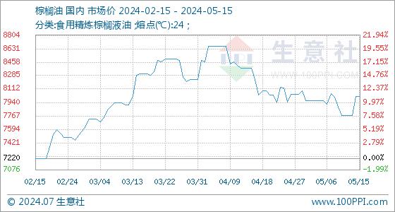 5月15日生意社棕榈油基准价为8014.00元/吨