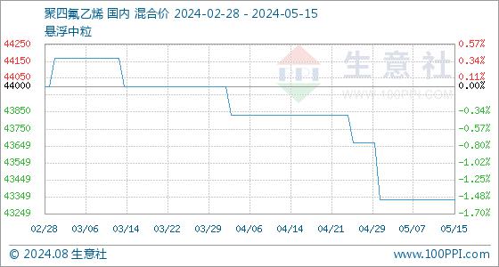 5月15日生意社聚四氟乙烯基准价为43333.33元/吨