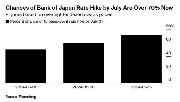 投资者加大了对日本央行在7月底前加息的押注,此前,日本央行在本周的例行操作中意外减少了债券购买规模。
