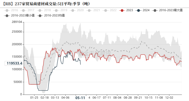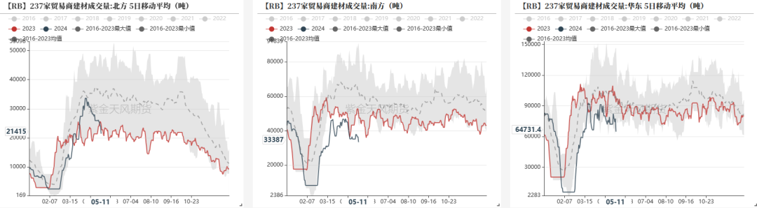 分地区来看,截至5月11日,华东地区建材成交量为6.47万吨;华北地区为2.14万吨;华南地区为3.38万吨。