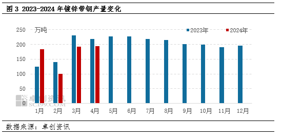 产量:4月镀锌带钢产量小幅增加,环比增幅0.23%