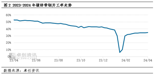 开工:4月镀锌带钢平均开工34.37%,环比提升1.11个百分点