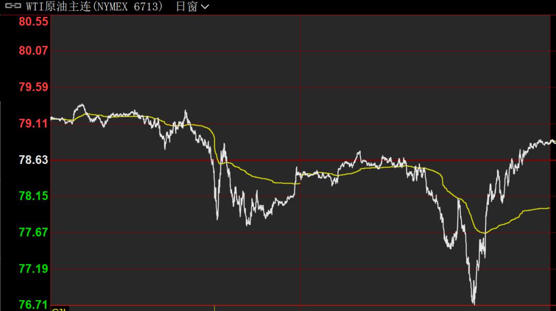 国际原油期货盘中转跌后V形反转。WTI6月原油期货收涨0.61美元,涨幅0.79%,报78.63美元/桶;布伦特7月原油期货收涨0.37美元,涨幅0.45%,报82.75美元/桶。