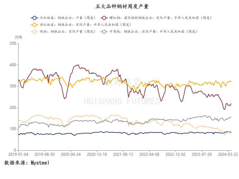 终端方面,钢材需求同样表现弱势。地产数据继续下滑,基建实物工作量受到资金的限制,制造业用钢则是在工业设备更新等政策支持下表现较好。不过,后期随着政策面长期国债落地,市场对基建需求恢复预期逐步转强。此外,钢材出口数据今年仍维持在高位,根据海关数据,2024年1-3月我国出口钢材2580.0万吨,同比增30.7%。出口数据强势除了买单等成本优势因素外,也反映出国内需求偏弱、海外需求韧性仍存的格局。目前来看,此前市场担心的海外反倾销政策暂未对出口造成影响。