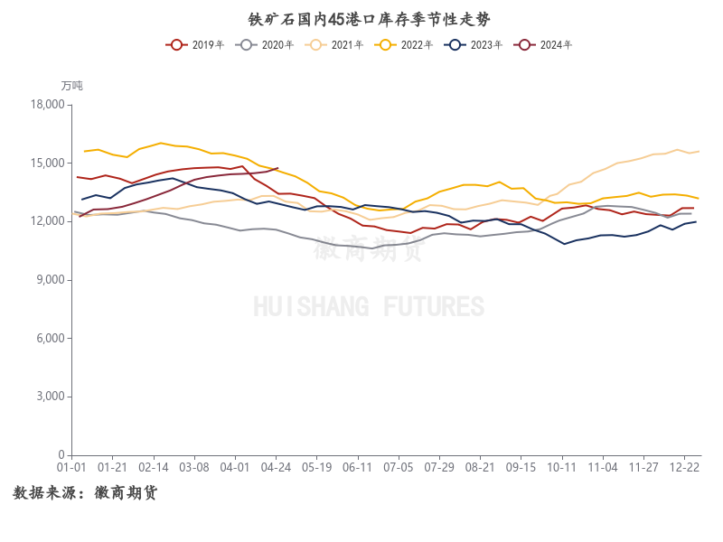 整体来看,今年前四个月是在供强需弱的格局下铁矿石总库存逐步增高,后续若铁水持续上行,则国内铁矿港口库存斜率将逐渐改平,而钢厂库存则大概率维持当下稳定的态势。