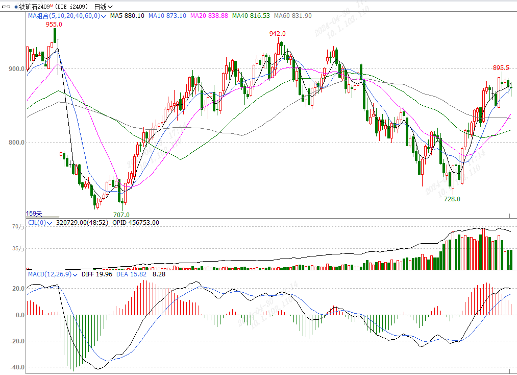 图1:I2409合约盘面走势(元/吨) |