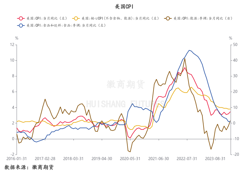 美国3月ADP大超预期,同时非农数据表现“爆表”,令美联储降息预期受到打压, 同时,3月美国消费者价格指数(CPI)同比上涨3.5%,涨幅较2月扩大0.3个百分点,3月核心PCE同比增长2.8%,其中最大来源是能源通胀,能源商品和能源服务同比增速从2月的-2.3%回升至2.6%,使得PCE超预期上行。而3月核心PCE同比、环比虽与2月基本持平,但依然超乎市场预期,整体粘性十足。这表明中东地缘局势紧张是通胀再度抬头的主因。总体来看,未来两个季度内降息的概率不大,但并不能就此判断年内不会再有降息的可能性。不过,对于商品来说,在通胀再度抬头的阶段,整体利多效应较为明显,铜、油等代表性的商品将保持强势。