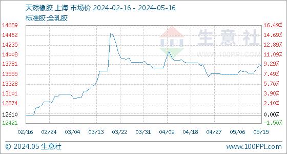 5月16日生意社天然橡胶基准价为13770.00元/吨