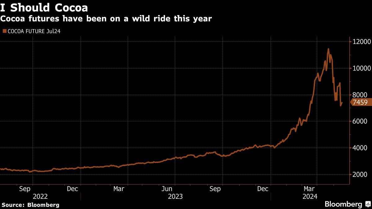 数据显示,纽约可可期货在4月触及每吨1.1万美元以上的历史高点,但随后回吐了部分涨幅。目前,纽约可可期货价格位于每吨7500美元附近。然而,这个以生长周期漫长著称的行业所面临的结构性压力预计将持续数年。