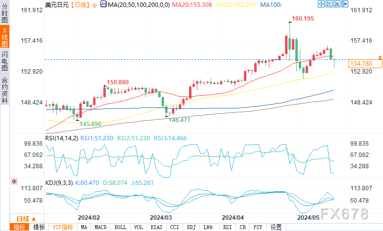 北京时间20:25,美元/日元报154.802,跌幅0.04%。