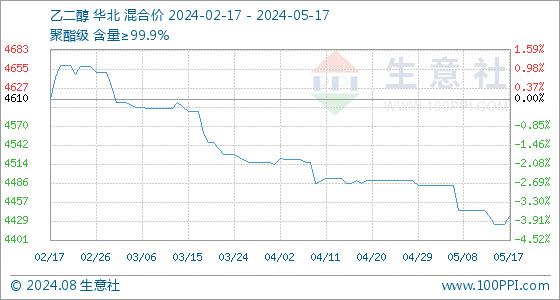 5月17日生意社乙二醇基准价为4425.00元/吨