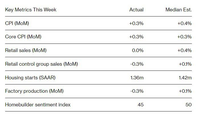房地产市场最近的势头显示出减弱的迹象,建筑商破土动工的房屋少于预期,建筑许可也有所下降。由于美联储的工业生产报告显示工厂产出下降,美国工厂的活动仍然低迷。