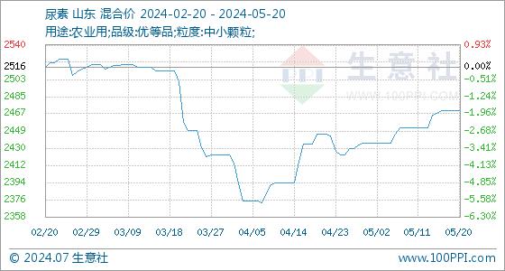5月20日,生意社尿素基准价为2470.83元/吨,与本月初(2435.83元/吨)相比,上涨了1.44%。