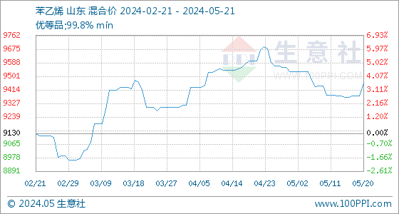 5月21日生意社苯乙烯基准价为9458.33元/吨