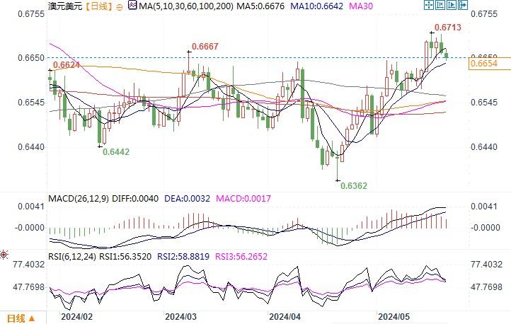 北京时间5月21日11:27澳元兑美元报0.6654/54。