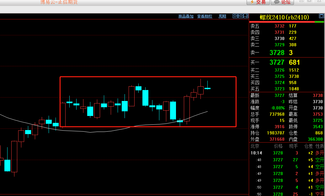 自上周四强势反弹以来的行情,到目前涨势有点强弩之末的感觉。