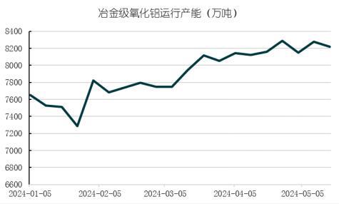 受国产矿供应紧张影响,国内氧化铝厂提产受限。今年以来,山西、河南地区矿山复产不及预期。年初市场曾经传闻晋豫矿山二季度有望复产,但直到4月底仍未听闻有复产消息。近期有消息称,山西晋中某铝土矿复产已获得批准,涉及产能30万吨/年。但根据SMM调研反馈,山西地区停产的大部分铝土矿尚在整合阶段,短期难以实现大规模复产。受制于国产矿供应紧张,国内氧化铝厂提产缓慢。据Mysteel数据,截至5月17日当周,冶金级氧化铝运行产能8220万吨,周环比回落60万吨。尽管最新周度氧化铝行业利润已经攀升至977.3元/吨,但国产矿供应紧张导致提产仍然“有心无力”。