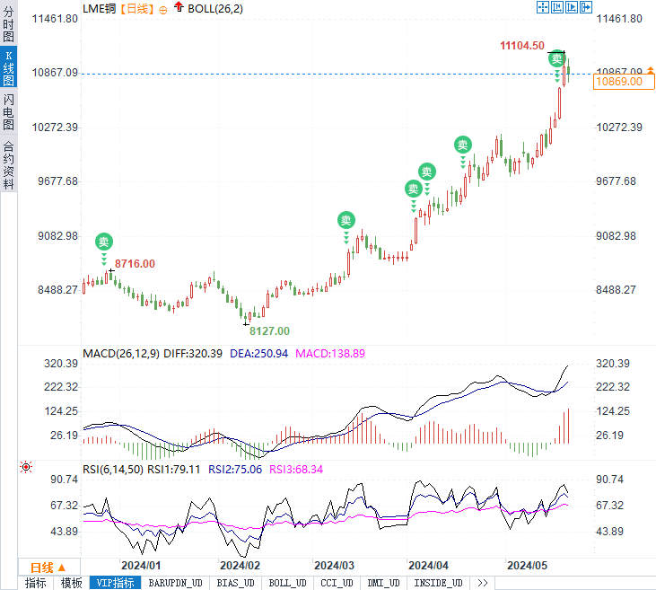 汇通财经APP讯——周二(5月21日),铜市迎来显著波动,伦铜价格回落至10867.50美元/吨左右。周一该合约曾创下11104.5美元/吨的历史性高点。沪铜仍旧表现强劲,最高触及88630元/吨的高位,日内上涨350元/吨,涨幅0.4%。全球有色金属市场普遍上涨,铜价的这一轮牛市似乎仍在继续。