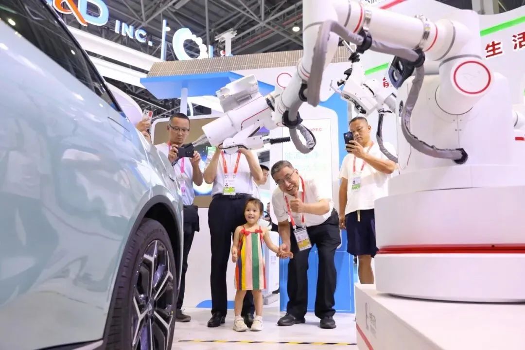 例如,我们这一台自动加油机器人,120秒就能自动识别所加油的车型,可自动打开油箱盖,自动校准加油口,完成加油的动作后,再关闭油箱盖。这体现了我们加快培育形成新质生产力所作的努力,同时也通过参展消博会,向社会公众全方位展示中国石化“油气氢电服”综合生态。