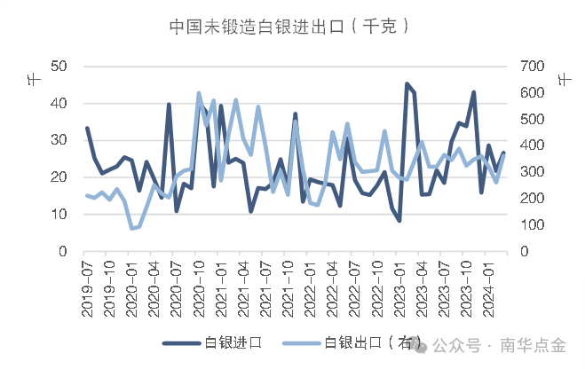 从全球交易所白银库存角度看,LBMA与SHFE、SGX白银库存整体皆进一步回落;COMEX白银库存则呈现上升态势,这可能与美国白银ETF持仓净流出有一定关联。然而COMEX白银库存的上升,仍无法流入国内市场,因中国白银进口征收13%增值税,整体银锭进口窗口仍未打开。