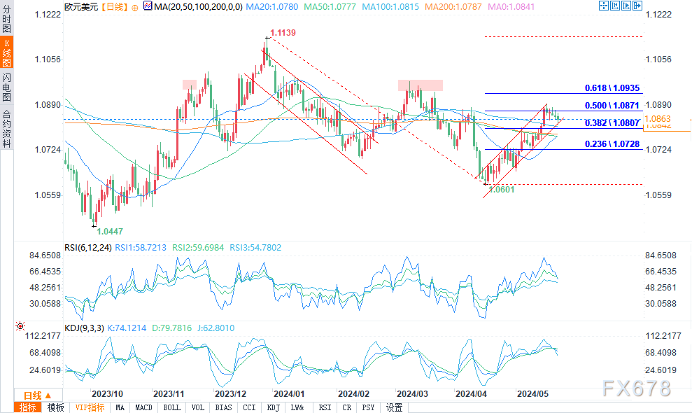 如果美元反弹,欧元兑美元进一步下跌,1.0800水平和200日简单移动均线成为焦点。然而,如果更广泛的上升趋势继续下去,1.0900将成为阻力位。德国制造业PMI和密歇根大学消费者信心报告似乎是本周结束前的潜在市场推动因素。