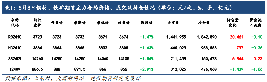 5月8日,铁矿石期货主力合约2409震荡下行,低开后震荡运行,午盘后震荡下跌,收报866元/吨,跌2.91%。
