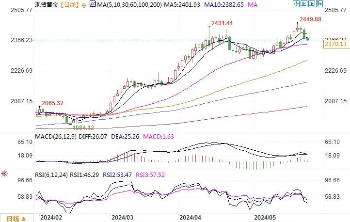 美联储会议纪要的措辞比市场预期的更加鹰派,对金价打压明显,周三(5月22日)现货黄金一度跌至2374.84美元/盎司,收报2378.44美元/盎司,较周二收盘价下跌逾40美元。分析师指出,由于2400美元的支撑位被跌破,它正面临更大的抛售压力。