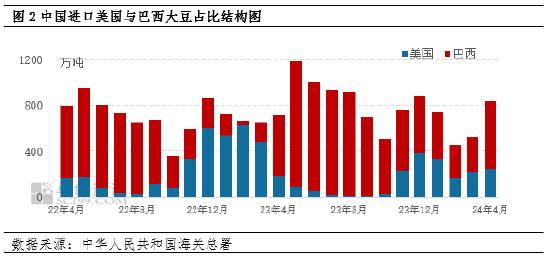 巴西是目前全球最大的大豆生产国和出口国。以USDA的5月报告中2023/24年度数据为例,巴西大豆产量为1.54亿吨,出口量1.02亿吨,比美国大豆产量多35.87%,出口量多120%。因此,巴西市场的供应能力,对全球大豆供应保障和中国豆粕的原料安全,都有较大意义。