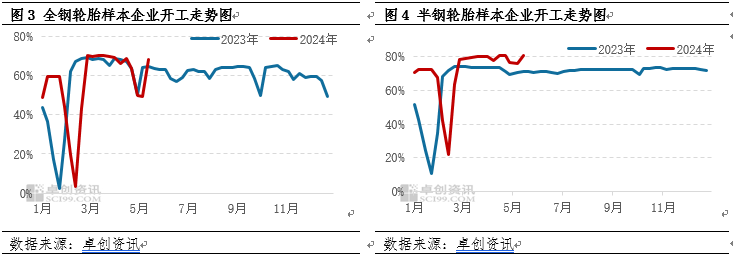 近期中国人民银行、国家金融监督管理总局、住房城乡建设部等多部门推出提振房地产市场政策“组合拳”,市场对全钢轮胎未来需求预期升温,5-6月份轮胎行业预计开工维持相对高位运行的概率较大,需求端表现稳定。