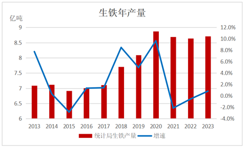 2016-2020年,十三五期间中国经济保持中高速发展,在此期间房地产与制造业投资增速稳步增长,基建投资增速出现下滑,整体需求保持强劲态势,生铁产量也因此出现明显增长。