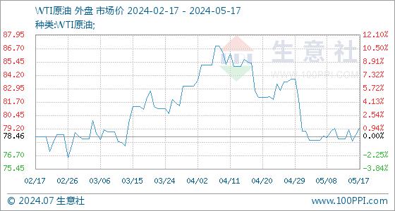 5月17日生意社WTI原油基准价为78.63美元/桶