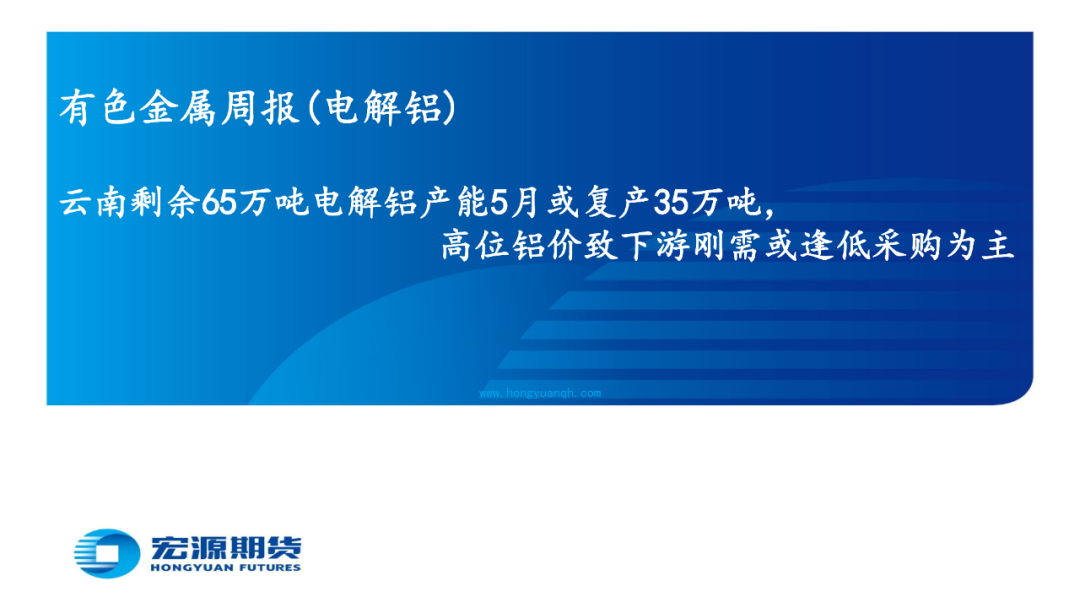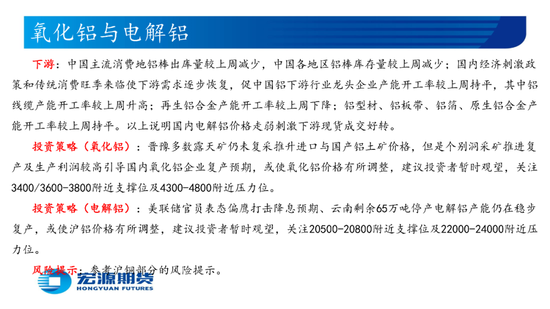 美联储官员表态偏鹰打击降息预期、云南剩余65万吨停产电解铝产能仍在稳步复产,或使沪铝价格有所调整,建议投资者暂时观望,关注20500-20800附近支撑位及22000-24000附近压力位。