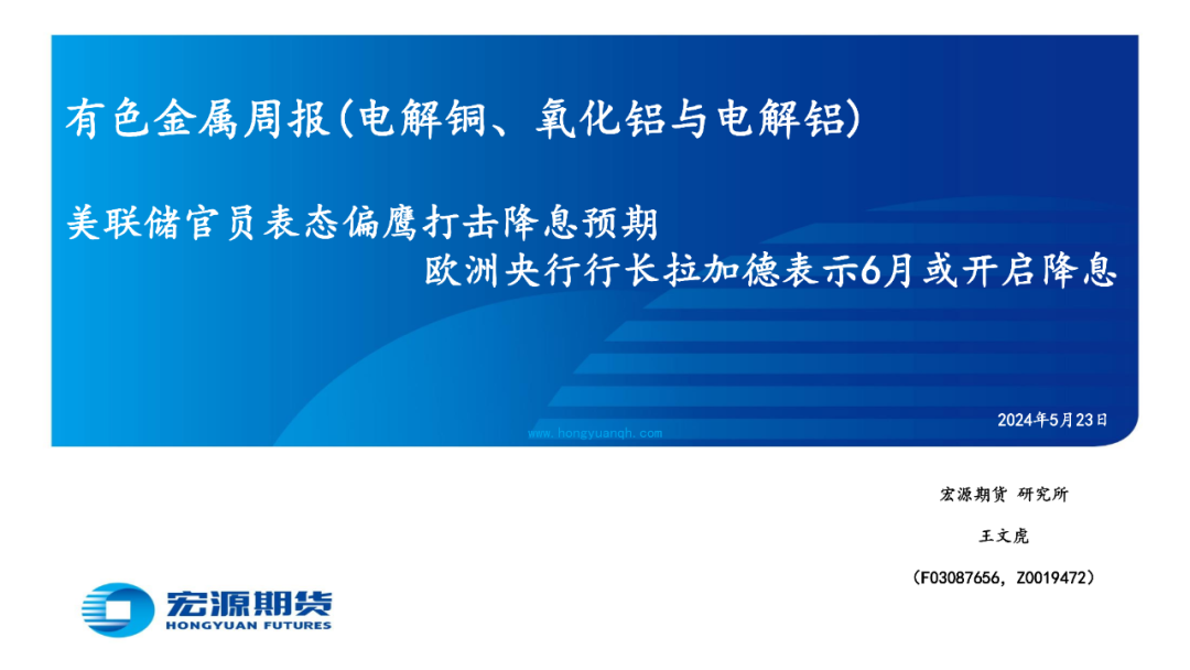 电解铜、氧化铝与电解铝|美联储官员表态偏鹰打击降息预期,欧洲央行行长拉加德表示6月或开启降息