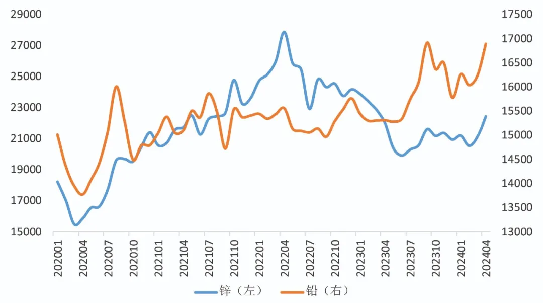 图4 SHFE铅锌主力合约月均价(元 / 吨)