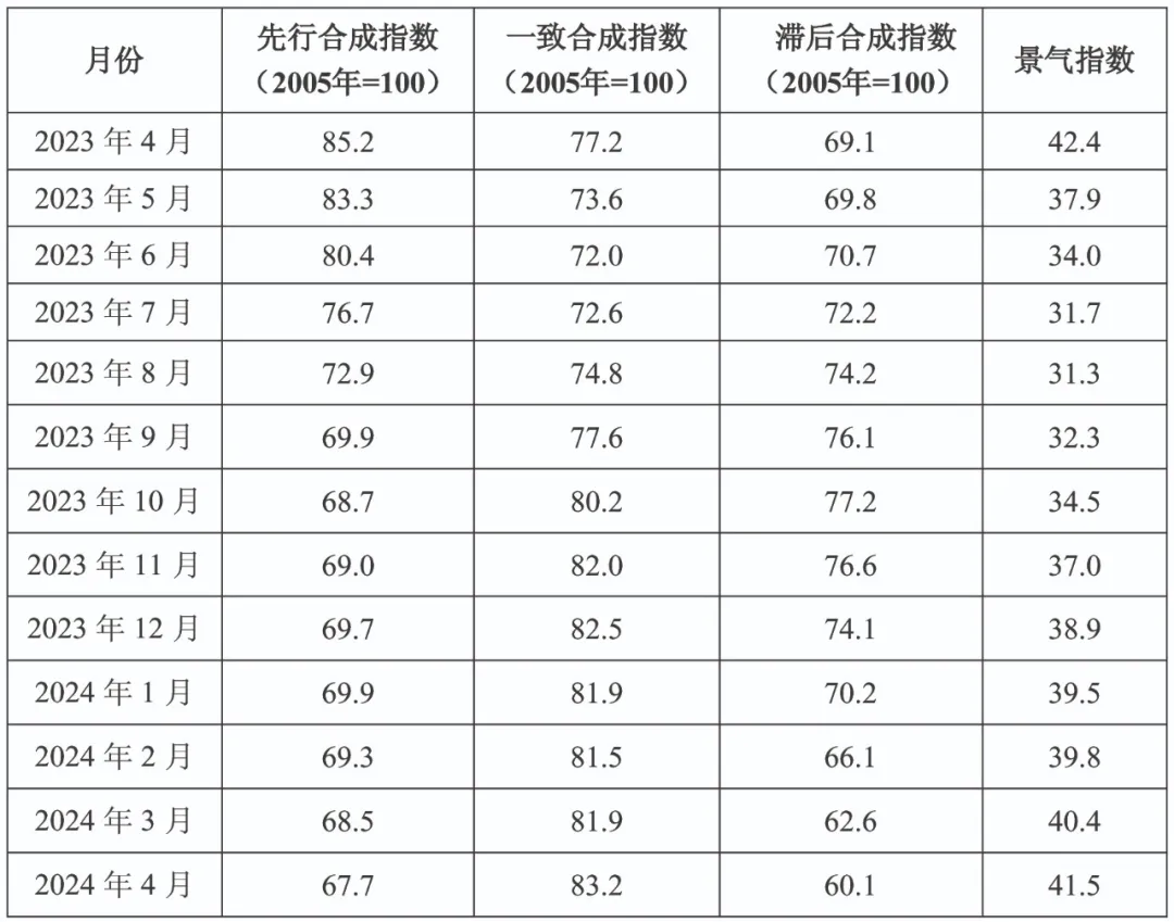 综合景气指数由9项指标构成,即先行指数和一致指数的构成指标。
