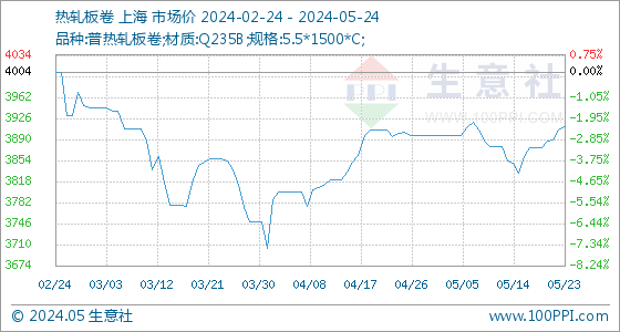 5月24日生意社热轧板卷基准价为3912.00元/吨