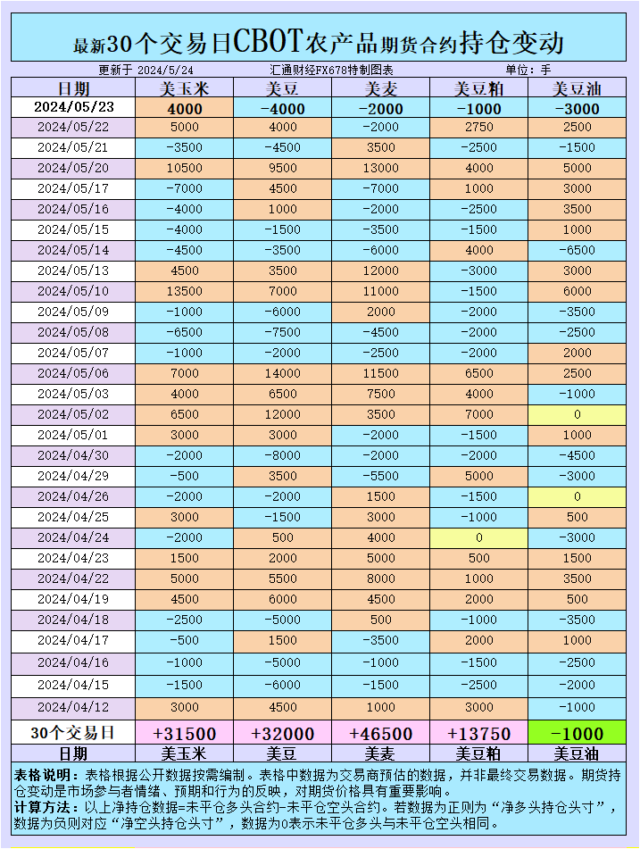 CBOT持仓:基金增美玉米净多头,增美豆美麦净空头