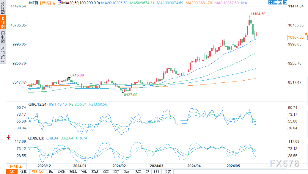 北京时间23:04,LME铜报10356美元/吨,跌幅0.03%。