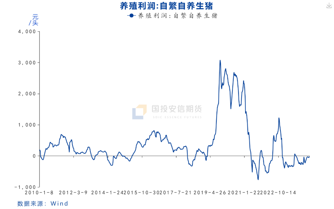自2023年下半年9月开始,豆粕、玉米等品种现货价格大幅下行,并推动了生猪养殖成本的下行。根据上市公司公告,目前养殖企业生猪完全养殖成本或在15元/公斤左右,其中行业龙头牧原股份4月份生猪完全养殖成本14.8元/公斤,温氏股份4月份生猪完全养殖成本14.4元/公斤。