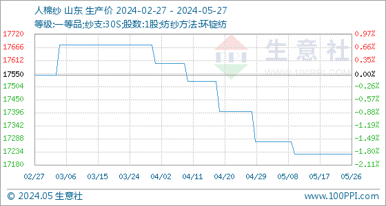 5月27日生意社人棉纱基准价为17225.00元/吨