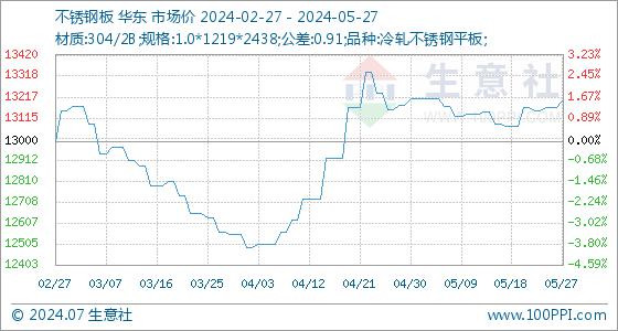 5月27日生意社不锈钢板基准价为13167.14元/吨