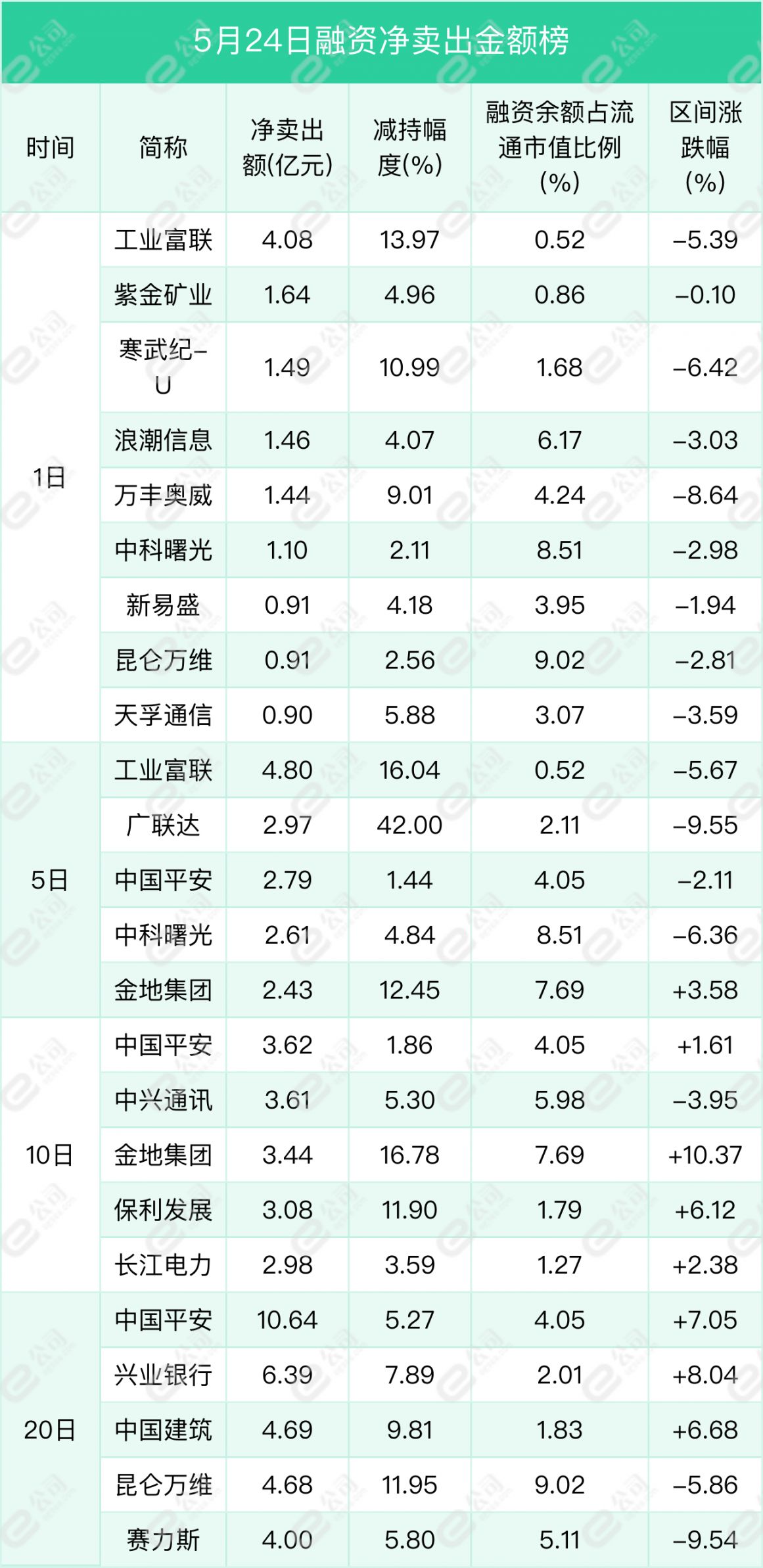 工业富联、紫金矿业、寒武纪-U遭融资净卖出金额居前,分别为4.08亿元、1.64亿元、1.49亿元,减持幅度分别为13.97%、4.96%、10.99%。