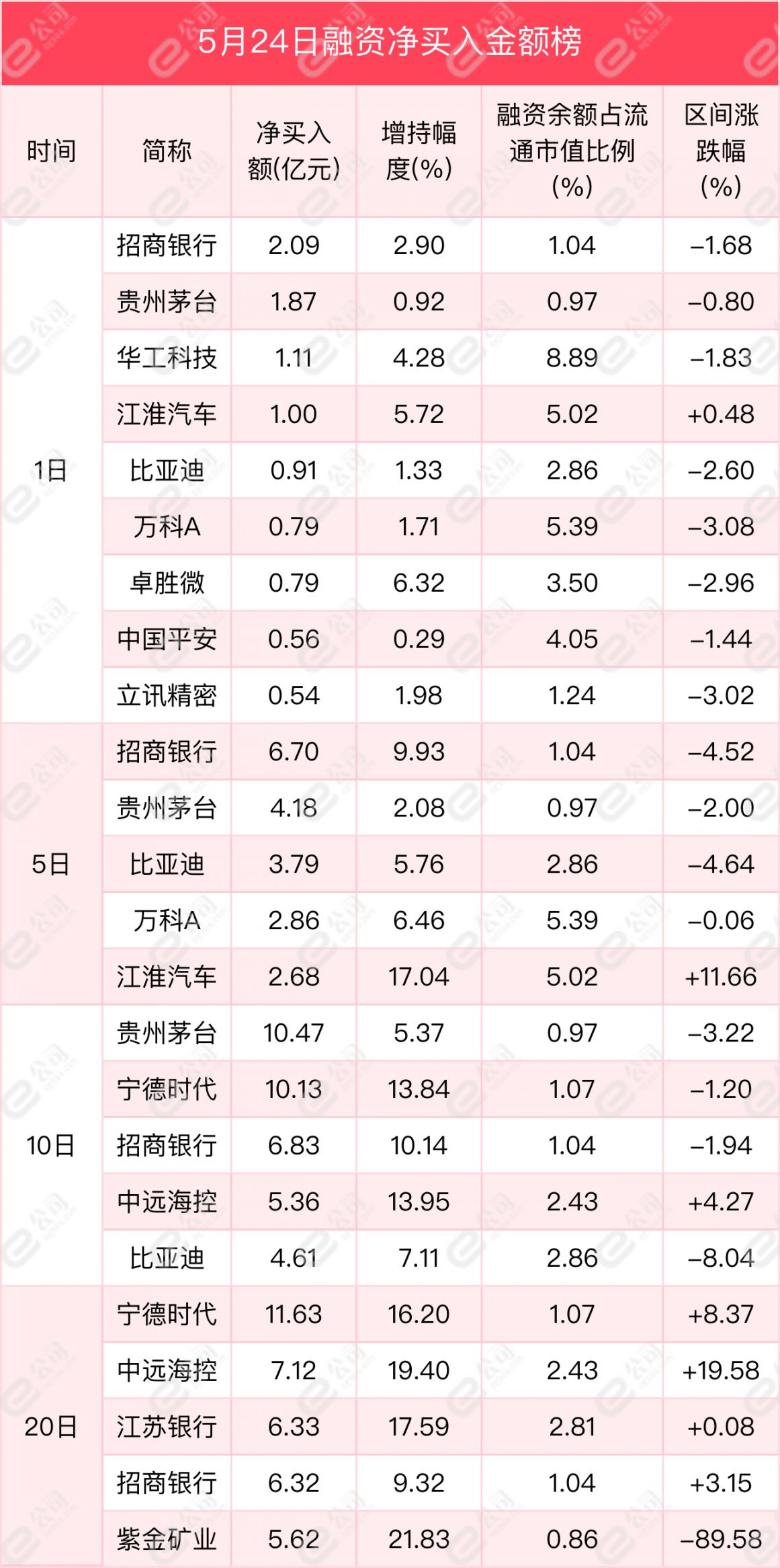 从买卖金额来看,招商银行、贵州茅台、华工科技获融资净买入金额居前,分别为2.09亿元、1.87亿元、1.11亿元,增持幅度分别为2.9%、0.92%、4.28%。