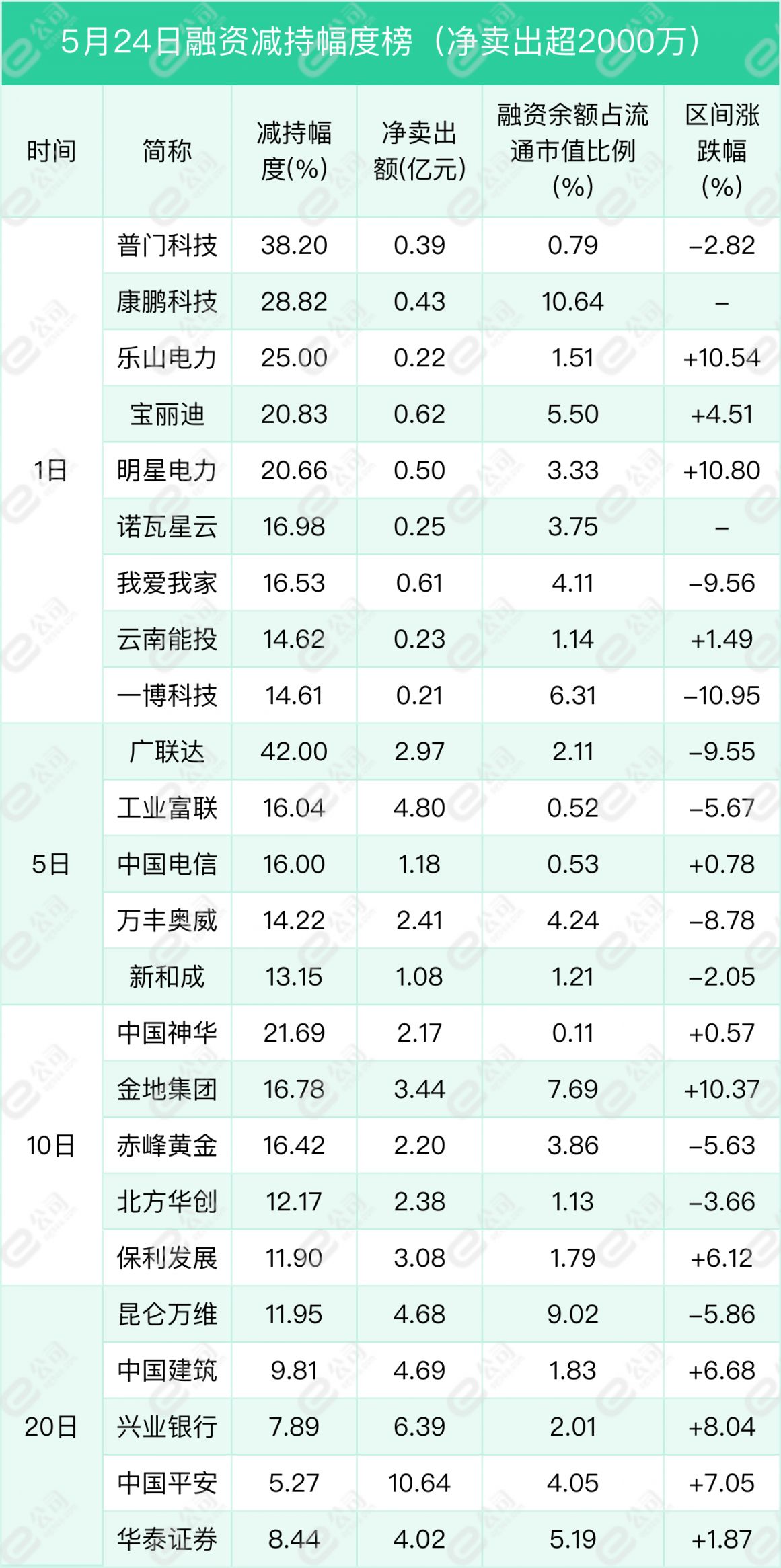 普门科技、康鹏科技、乐山电力遭融资减持幅度居前,分别为38.2%、28.82%、25%。