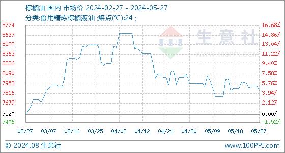 5月27日生意社棕榈油基准价为7924.00元/吨