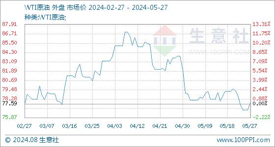 5月27日生意社WTI原油基准价为76.87美元/桶