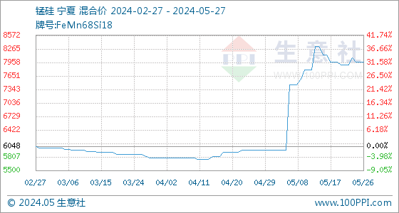 5月27日生意社锰硅基准价为7958.33元/吨