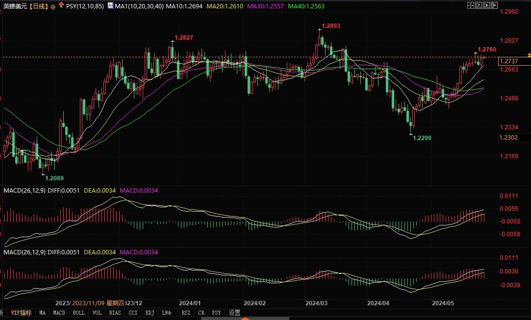 北京时间5月27日9:00,英镑兑美元报1.2738/39