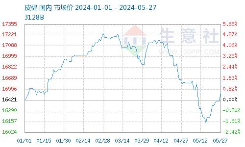 5月27日中国棉花指数3128B级均价16556元/吨,较上一交易日上涨91元/吨。